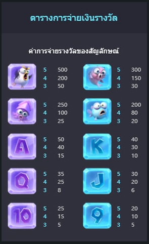 สัญลักษณ์และอัตรการจ่ายของสล็อต The Great icescape