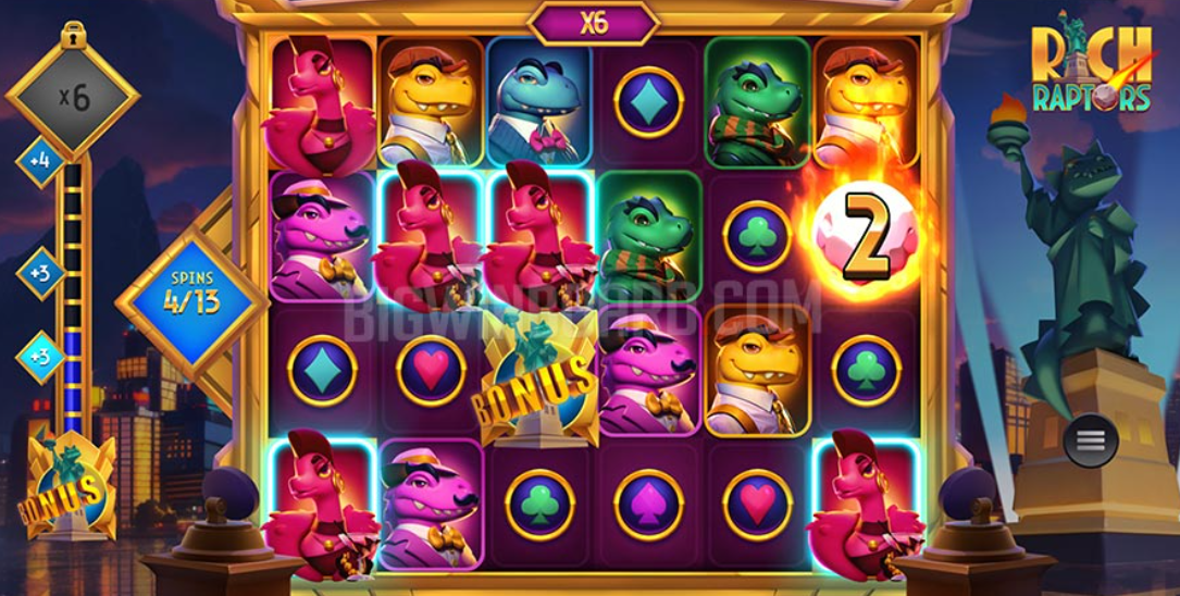 เกมสล็อตRich Raptors ค่ายRelax Gaming มาใหม่ 2025 สัญลักษณ์Scatter แทนด้วยรูป เทพีเสรีภาพไดโนเสาร์ สัญลักษณ์นี้เมื่อพบบนวงล้อครบ 3 – 5 สัญลักษณ์ขึ้นไป จะเข้าสู่โหมดพิเศษทันทีโดยผู้เล่นจะได้รับฟรีสปินทันที โดยให้การฟรีสปินมากถึง 10 รอบฟรีสปินด้วยกัน sca68-th