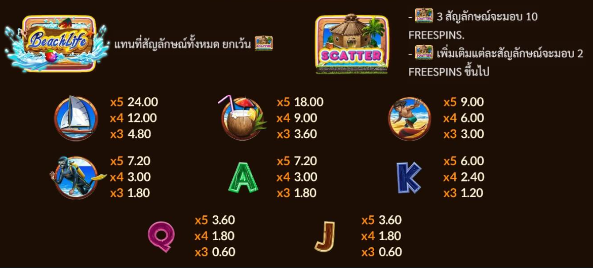 Beach Life เกมสล็อตธีมทะเลชายหาดที่ sca68-th ขอแนะนำ เกมสล็อตภาพสวย สีสันสดใส เอฟเฟคเสียงประกอบสนุกสนาน เหมาะกับผู้เล่นทั้งมือใหม่และมือเก่า เล่นได้ทุกที่ ทุกเวลา เพียงแค่มีสมาร์ทโฟน คอม หรือแท็บเล็ต ต่ออินเทอร์เน็ตก็เพียงพอเแล้ว ถ้าหากเพื่อนๆ อยากสัมผัสบรรยากาศทะเล แสงแดด หาดทราย และสายลม เชิญเข้าเกมนี้มาได้เลย เราจะพาเพื่อนไปทะเล และยังได้รับรางวัลกลับไปด้วย