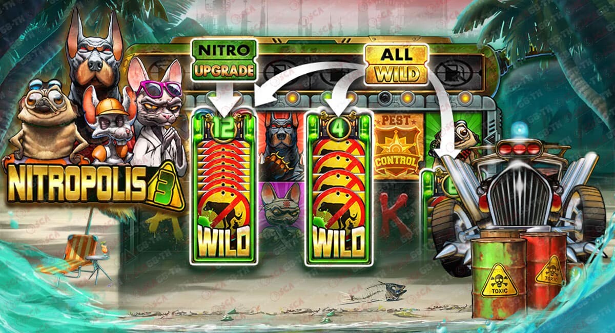 สำหรับฟีเจอร์ใหม่ใน Nitropolis 2 นั้น รวมถึง Nitro Reels, Splitz Mystery Stacks และค่าความเสี่ยง (Volatility) ที่สามารถเลือกได้ ซึ่งทำให้เกมมีความน่าสนใจและเพิ่มโอกาสในการชนะรางวัลอีกด้วย