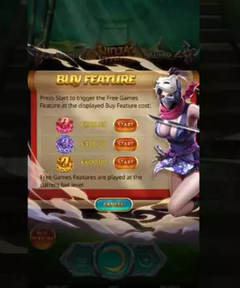 เป็นสัญลักษณ์ Master Ninja 3 ตัวเรียกเกม Master Ninja ฟรี มีโอกาสสูงที่ Ninja, Master Ninja หรือ Grandmaster Ninja จะถูกเรียกหรือเรียกซ้ำในเกมฟรีครั้งที่ 8 ดูกฎของเกมสำหรับรายละเอียดเพิ่มเติมในเกม และจะได้รางวัลแน่นอน ถ้าได้ครบ 3 สัญลักษณ์ 2.5 เท่า