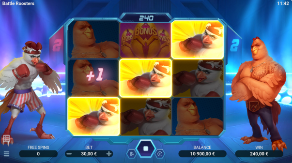เกมสล็อต ไก่นักชก BattleRoosters ค่าย EVOPLAYมารูปแบบของเกมวิดีโอสล็อต 3 รีล 3 แถว เกมนี้เล่นด้วยช่องจ่ายเงินคงที่ 5 ช่อง เกมดังกล่าวมีสัญลักษณ์ปกติ 8 ตัว สัญลักษณ์โบนัส ฟีเจอร์ Fight Spins และเกมโบนัส การผสมสัญลักษณ์ที่เหมือนกันที่ชนะจะถูกสร้างขึ้นตามลำดับจากซ้ายสุดไปขวา ยิ่งสัญลักษณ์ที่เหมือนกันมากเกิดขึ้นอย่างต่อเนื่อง ยิ่งชนะมากขึ้น