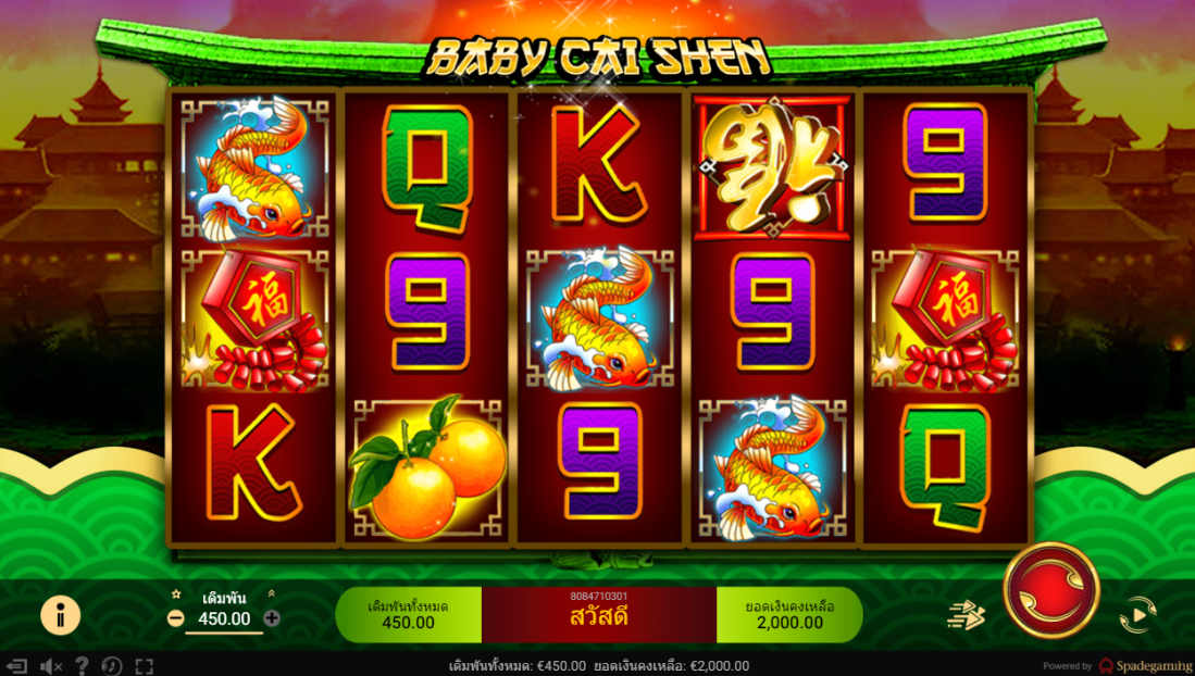 สล็อตBaby Cai Shen – เบบี้ไคเชียน เป็นเกมสล็อตวิดีโอที่มีวงล้อขนาด 5 รีล 3 แถว มีค่าความผันผวนของอัตราการจ่ายเงินรางวัลอยู่ที่ RTP: 97.06 % มีเส้นทางการจ่ายเงินรางวัลภายในเกมทั้งหมด 9 เพย์ไลน์ การจ่ายเงินรางวัลสูงสุดถึง 3,750x เท่าของยอดเดิมพัน และฟีเจอร์พิเศษต่าง ๆ อย่าง Wild Symbol การรวมกันที่ชนะด้วย WILD จะกระตุ้น 5 ฟรีสปินและตัวคูณโบนัส 3 เท่า ฟรีสปินสามารถเรียกซ้ำได้ในระหว่างเกมฟรี หากสัญลักษณ์ WILD ปรากฏในชุดค่าผสมที่ชนะอีกครั้ง และยังมีฟีเจอร์ที่น่าสนใจอย่าง Scatter Symbol ที่สามารถคูณเงินรางวัลทั้งหมดได้ และเป็นสัญลักษณ์ ที่มีอัตราการจ่ายที่สูงอีกด้วย sca68-th