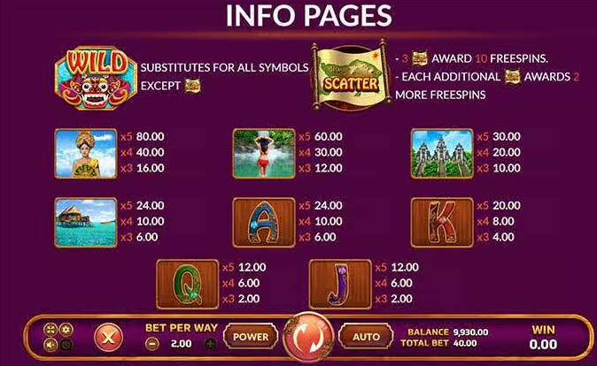 สัญลักษณ์และการจ่ายเงิน เกมบาหลี