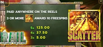 สัญลักษณ์ Scatter หากหมุนออกมาได้ 3 สัญลักษณ์ขึ้นไปให้ปรากฏอยู่ที่ใดก็ได้บนหน้าจอเกมสล็อต จะได้รับหมุนฟรีได้เลย 10 ครั้งด้วยกัน