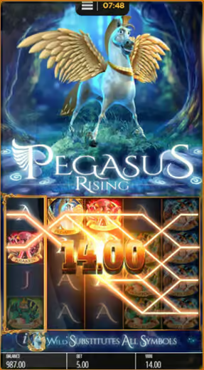 เกมสล็อต ม้าบิน PegasusRising เกมจากค่าย Blueprint ที่ได้รับแรงบันดาลใจจากเจ้าม้าสีขาวมีปีก สัตว์เทพนิยายกรีกในตำนาน มาเป็นสล็อตแบบ 5 รีล มี 4 แถว มีเส้นทางจ่ายเงินรางวัล 40 แบบ ผู้เล่นสามารถเลือกเดิมพันขั้นต่ำ 0.50 – 250 ทดลองเล่นสล็อตฟรีได้ก่อนใครที่เว็บรวมเกมสล็อตออนไลน์ทุกค่าย sca68-th เว็บสล็อตทำกำไรคุณภาพ ที่เดียวจบครบทุกค่ายสล็อต
