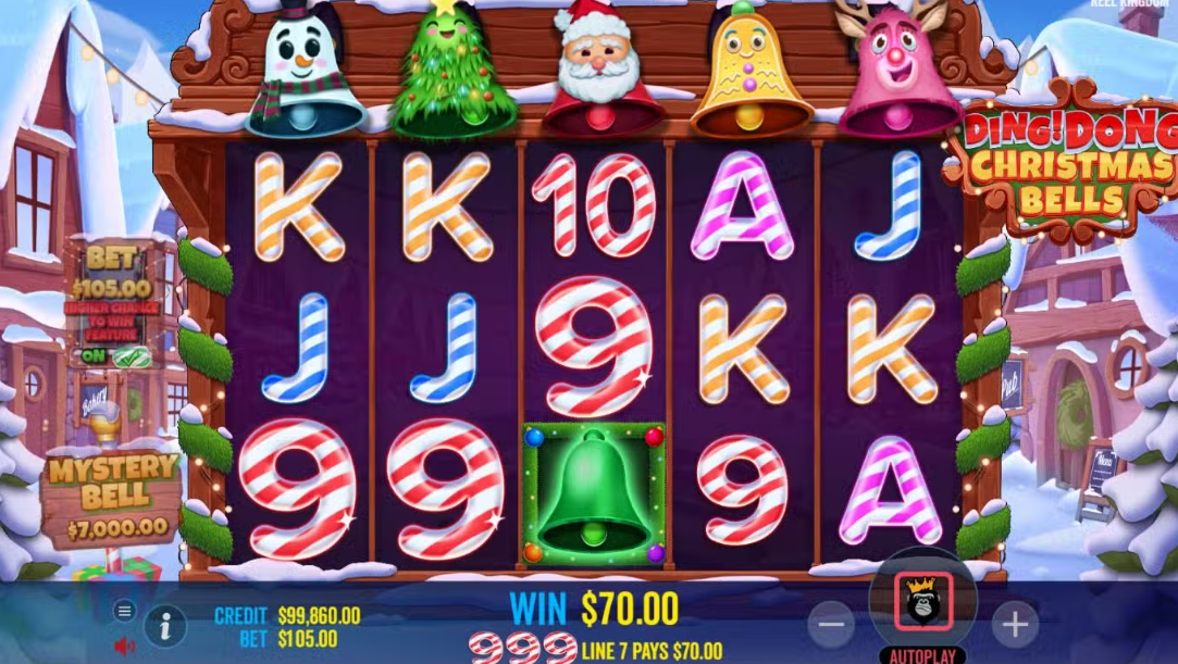 เรายินดีนำเสนอ สล็อตออนไลน์ sca68-thเกม Ding Dong ChristmasBells จากค่ายเกม Pragmetic Play เตรียมตัวให้พร้อม ต้อนรับเทศกาล แห่งความสุขด้วย สล็อต ดิงดองระฆังคริสต์มาส ในระหว่างเกมหลัก สัญลักษณ์ระฆัง ทั้งห้าอัน จะเชื่อมโยงกับ สัญลักษณ์เดียวกัน ที่ด้านบนของตารางเกม ในแต่ละครั้ง ที่สัญลักษณ์ระฆังตกลง โน้ตดนตรีจะกระทบ กับสัญลักษณ์ ที่เชื่อมโยงกัน ที่ด้านบนของหน้าจอ โดยมีโอกาส ที่จะสุ่มเรียกใช้ รอบโบนัสฟรีสปิน ทุกครั้งที่ระฆังดังขึ้น ขึ้นอยู่กับจำนวนระฆัง ที่เปิดใช้งาน เมื่อมีการเรียกใช้รอบโบนัส