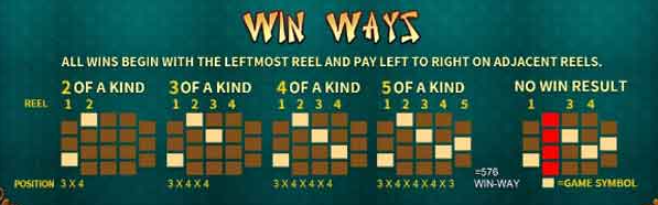 เกมนี้มีอยู่ด้วยกันทั้งหมด 576 ไลน์ด้วยกัน การที่ท่านจะชนะการเดิมพันได้นั้น ต้องหมุนสปินให้มีสัญลักษณ์ที่เหมือนกันเรียงกันตามไลน์เดิมพันที่เกมกำหนดตามรูปที่ปรากฏด้านบน ซึ่งจะได้รางวัลมากหรือน้อยนั้น ขึ้นอยู่กับจำนวนที่ท่านหมุนให้สัญลักษณ์ออกมาได้ ตั้งแต่ 2 ถึง 5 ตัว และขึ้นอยู่กับการลงเดิมพันของท่านด้วย ยิ่งลงมาก รางวัลยิ่งคูณมาก ติดตามทริคดีๆ ได้ที่ sca68-th