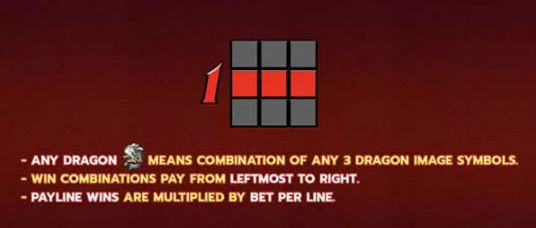 มังกรสีแดง :ถ้าหากปรากฎมังกรสีแดงขึ้นในเกม 3 ตัว อัตราการจ่ายเงินจะอยู่ที่ 500