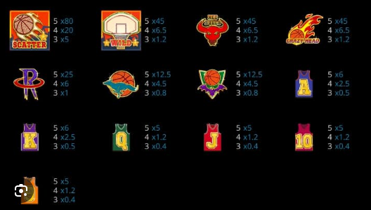 สัญลักษณ์อัตราการจ่ายของ เกมสล็อตบาสเกตบอล