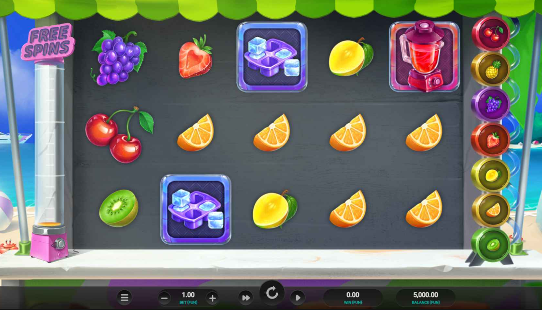 สล็อตBlender Blitz มีสัญลักษณ์ FREESPIN สัญลักษณ์ผลไม้ เมื่อถูกทำลายครบ 15 ตัว จะเปิดใช้งานฟีเจอร์ฟรีสปิน เมื่อฟีเจอร์เริ่มต้นคุณจะได้รับรางวัลฟรีสปิน 5 ครั้ง สล็อต ค่าย Relax Gaming