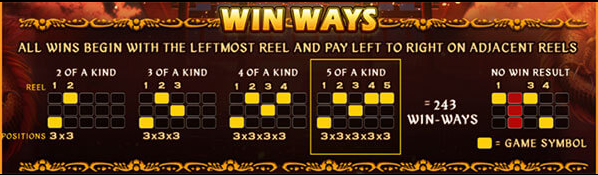 เกมนี้นั้นมีถึง 243 ไลน์การเอาชนะ ซึ่งวิธีการเอาชนะเกมก็ทำได้ไม่ยากนั่นก็คือหมุนสัญลักษณ์ให้ออกมาตามไลน์ชนะของเกม โดยเรียงจากซ้ายไปขวา โดยจะต้องมีสัญลักษณ์ที่เหมือนกันตั้งแต่ 3 สัญลักษณ์ขึ้นไป ถึง 5สัญลักษณ์ ซึ่งท่านจะได้รางวัลมากหรือ ได้น้อยขึ้นอยู่กับจำนวน BET ที่ได้ตั้งไว้ ยิ่งค่า BET เยอะ ก็จะได้ยอดการเดิมพันสูงเช่นกัน