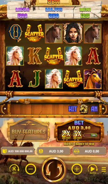 Stallion Princessทดลองเล่น จะมีสัญลักษณ์ Wild เป็นรูป หัวหน้าเผ่า เป็นสัญลักษณ์ที่สามารุแทนที่สัญลักษณ์อื่นๆ ได้ทั้งหมดในเกม ยกเว้นสัญลักษณ์พิเศษ เช่น Scatter และเมื่อรวมสัญลักษณ์ Wild ได้ 3 4 และ 5 อันในหนึ่งรอบสปิน จะได้รับเงินรางวัลตั้งแต่ 125 300 500 เท่าของเงินเดิมพัน ตามลำดับ sca68-th