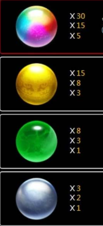- สัญลักษณ์ ลูกแก้วสีเทา ตั้งแต่ 3 4 และ 5 อัตราการจ่ายเงินรางวัลของเกม อยู่ที่ x1,x2,x3