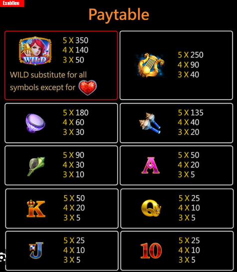 - สัญลักษณ์เครื่องดนตรี อัตราการจ่ายเงินรางวัลสูงสุดของเกม คือ 250