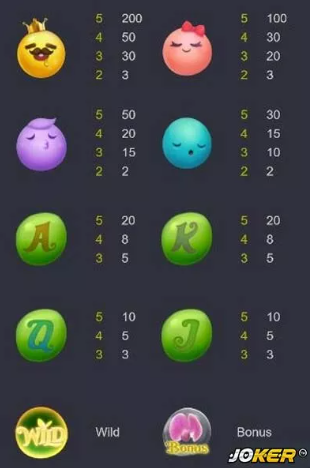 สัญลักษณ์ที่พบได้ในเกมสล็อต Peas Fairy ที่ค่าย jokertm นำเสนอ เป็นสล็อตวิดีโอ 5 รีล 3 แถว ที่มี Wilds-on-the-Way ซึ่งในตัวเกมจะมีสัญลักษณ์พิเศษ scatter และ สัญลักษณ์พิเศษ wild ให้คุณสามารถลุ้นรับเงินรางวัลใหญ่ ๆ อย่าง super mega win ได้
