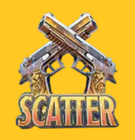 สัญลักษณ์ Scatter เป็นสัญลักษณ์ที่สามารถปรากฏได้ทุกรีล แทนด้วยรูป ปืน สามารถปรากฏได้ทุกรีล สัญลักษณ์ scatter ปรากฏ 3 ตัว จะเข้าสู่ฟีเจอร์ฟรีสปิน 15 รอบหมุน sca68-th