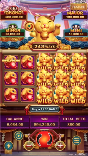 เกมสล็อต FC FACHAI แมวเหมียวนำโชค Win Win Neko เป็นสล็อตวิดีโอ 6 รีล 5 แถว (มีแถวพิเศษเพิ่มเติม ข้างบนของรีลที่ 2-5) ที่มีตัวคูณสัญลักษณ์ฟีเจอร์ Wild-on-the-Way และฟีเจอร์ Free Spins ที่มาพร้อมด้วยตัวคูณที่มากขึ้น หากว่าสัญลักษณ์ปรากฎ บนกระดาน 4 สัญลักษณ์ จะก่อให้คุณไปสู่ฟีเจอร์ Free Spins และได้รับสปินฟรี 10 ครั้ง นอกจากนี้ คุณจะได้รับสปินฟรีเพิ่มเติมอีก 2 ครั้ง ต่อ 1 สัญลักษณ์ Scatter