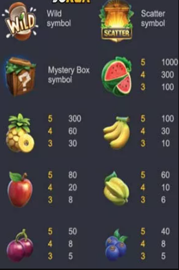 สล็อตออนไลน์ จากรูปข้างต้น คุณจะเห็นได้ว่าเกมนี้ เป็นเกมที่ใช้สัญลักษณ์รูปผลไม้ทั้งหมดเพื่อที่เป็นการลุ้นรับเงินรางวัล โดยรูปสัญลักษณ์อื่น ๆ ธรรมดาที่ไม่ใช่สัญลักษณ์พิเศษ มันก็จะมีอัตราการจ่ายที่แตกต่างกันไป ซึ่งรูปสัญลักษณ์พวกนั้นคุณไม่ต้องทำการจดจำก็ได้ เพราะเว็บของ โจ๊กเกอร์ นั้นจะบ่งบอกชี้แจงในเกมอยู่แล้ว คุณสามารถคลิ๊กได้ทันทีเลยว่าอยากจะทราบที่รูปสัญลักษณ์อะไร อยากจะทราบถึงอัตราการจ่ายของสัญลักษณ์ไหน แต่รูปสัญลักษณ์ที่ทางเกมจะไม่ได้บอก ก็จะเป็นสัญลักษณ์พิเศษต่าง ๆ ซึ่งสัญลักษณ์พิเศษต่าง ๆ ก็จะมีอัตราการจ่ายดังนี้ sca68-th