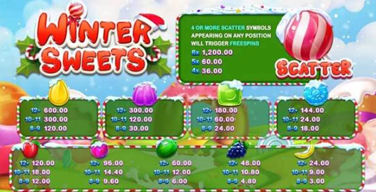 ภายในเกมนี้จะมีภาพสัญลักษณ์ต่างๆจำนวนมาก ปรากฏขึ้นมา ซึ่งนักพนันทุกท่านทุกท่านสามารถเข้ามาศึกษารายละเอียดอัตราการจ่ายเงินเกมสล็อตวินเทอร์สวีตได้ข้างล่างนี้ โดยในการเล่นเกม Winter Sweets จะประกอบไปด้วย ภาพสัญลักษณ์ลูกอมสีเหลือง, ภาพสัญลักษณ์ลูกอมสีม่วง, ภาพสัญลักษณ์ลูกอมสีเขียว, ภาพสัญลักษณ์ลูกอมสีฟ้า, ภาพสัญลักษณ์แอปเปิล, ภาพสัญลักษณ์ลูกท้อ, ภาพสัญลักษณ์แตงโม, ภาพสัญลักษณ์องุ่น และ ภาพสัญลักษณ์กล้วย เป็นต้น sca68-th