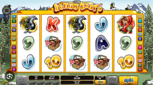 เกมสล็อต Bonus Bear โบนัสแบร์ ที่ให้บริการในเว็บไซต์เกมสล็อต sca68-th เกมใหม่น่าเล่น เป็นวิดีโอเกมสล็อตรูปแบบ 5 รีล 3 แถว รูปแบบพื้นฐานเกมสล็อตในปัจจุบัน ภายในเกมถูกออกแบบมาอย่างดีเยี่ยม กราฟฟิกที่สวยงาม ที่มาพร้อมกับไลน์ที่ชนะรางวัลภายในเกมนี้ จะมีไลน์เดิมพันทั้งหมด 25 ไลน์ ซึ่ง จะเริ่มคำนวณและทำการจ่ายรางวัลออกไปหากมีสัญลักษณ์แบบเดียวกัน อยู่ติดต่อกันตั้งแต่ 3 สัญลักษณ์ขึ้นไป ในตำแหน่งไลน์เดิมพันจากทางด้านซ้ายไปยังด้านขวา จะได้รับรางวัลทันที