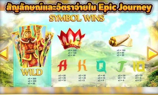 สัญลักษณ์และอัตราจ่ายใน สล็อต Epic Journey