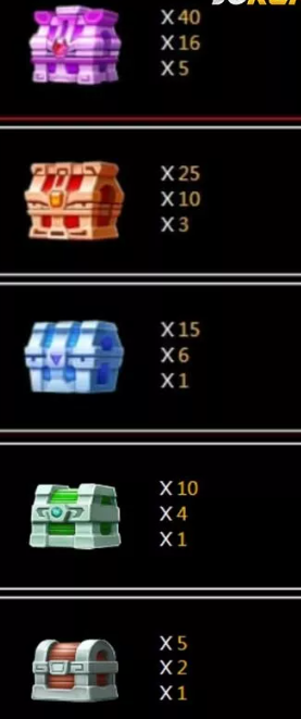 สัญลักษณ์อัตราการจ่ายเงินรางวัลของเกมนี้ใน joker gaming มีทั้งหมด 5 แบบด้วยกัน นั้นก็คือ หีบสมบัติสีม่วง หีบสมบัติสีแดง หีบสมบัติสีฟ้า หีบสมบัติสีเขียว และหีบสมบัติสีน้ำตาล อัตราการจ่ายสูงสุดอยู่ที่ x40และอัตราการจ่ายต่ำสุดอยู่ที่ x5 สัญลักษณ์ต่าง ๆ ในเกมจะมีค่าอัตราการจ่ายที่แตกต่างกันออกไปตามรูปภาพ sca68-th