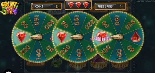 ในเกม FruitSpin คุณจะได้รับรางวัลฟีเจอร์พิเศษ Lucky Wheels 3 อัน หรือเปิดใช้งานฟรีสปินได้ การหมุนหนึ่งครั้งจะได้รับรางวัลในแต่ละ Lucky Wheel สำหรับแต่ละแถวของสัญลักษณ์ 3×3 Scatter ที่มองเห็นได้บนวงล้อหลังการหมุน ในเกมหลัก Lucky Wheel แต่ละ อันจะมีสัญลักษณ์สองตัวดังต่อไปนี้: สัญลักษณ์หมุนฟรี และสัญลักษณ์ชนะ เหรียญ 20, 40 และ 80 เหรียญ ทางเข้าเล่น sca68-th