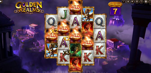 - สัญลักษณ์ Wild แบบสุ่มเกม GoldenRealms – เมื่อเปิดใช้งาน ผู้เล่นจะได้รับประโยชน์จากสัญลักษณ์ Wild 5 ถึง 9 อันที่ตกลงมาบนรีลโดยไม่สามารถคาดเดาได้