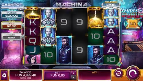 อีก 5 สัญลักษณ์ (รวม 13 รายการ): สัญลักษณ์ PINK WOMAN, BLUE MAN และสัญลักษณ์ TURQUOISE WOMAN บนวงล้อจะเปลี่ยนเป็นสัญลักษณ์ CYBORG และแสดงเป็นสัญลักษณ์ CYBORG ในการหมุนฟรีทั้งหมดหลังจากการหมุนที่ข้ามเกณฑ์ 2 ฟรีสปินเพิ่มเติมคือ ได้รับรางวัล