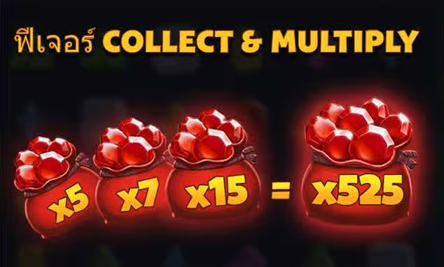 ความพิเศษของการจ่ายเงินรางวัลอยู่ที่ feature Collect Multiplayer ที่ถูกเรียก เมื่อมีคัตเตอร์ที่เหมือนกันเกิดขึ้น เมื่อถูกเปิดใช้งานจะมีการสะสมเงินรางวัลไปยังช่องสัญลักษณ์ 1 นับตั้งแต่เงินรางวัลชุดแรกและเกมจะมอบฟรีสปินให้ในระหว่างเกม หรือผู้เล่นจะสามารถมองเห็นสัญลักษณ์นี้จะเป็นรูปของถุงเงิน เพิ่งเปลี่ยนคัตเตอร์ชุดของการชนะ และสัญลักษณ์ที่อยู่ประเภทเดียวกันที่อยู่ติดกับสัญลักษณ์ของถุงเงิน จะเข้ามาบวกเพิ่มสะสมแสดงเป็นเงินรางวัล x จำนวนสัญลักษณ์ที่อยู่ติดกัน ทางเข้าเล่น sca68-th