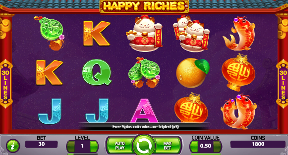 เกมสล็อตออนไลน์ HappyRiches เป็นเกมสล็อตจากค่าย NETENT เป็นเกมสล็อตแนวเอเชีย ที่มีสัญลักษณ์ แมวกวักนำโชค เป็นธีมหลักของเกม และสัญลักษณ์แห่งโชคลาภ เช่น โคมไฟจีน, และถุงเงินทอง เกมนี้ได้รับแรงบันดาลใจจากความเชื่อเรื่องความมั่งคั่งในวัฒนธรรมจีน ผสมผสานกับฟีเจอร์พิเศษที่จะช่วยให้คุณมีโอกาสรับรางวัลแจ็คพอตได้อย่างง่ายดาย สามารถเข้ามาเล่น สล็อตทดลอง ที่หน้าเว็บ sca68-th ได้ตลอด 24 ชั่วโมงแบบไม่มีจำกัด
