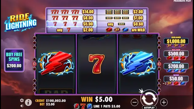 เกมสล็อต Ride the Light ning จากค่าย Pragmatic Play ธีมตั้งในท้องฟ้ามืดครึ้ม ทีมีแสงสายฟ้าฟาดตลอดเกม กราฟิกสวยคมและเสียงดนตรีสายฟ้าร็อกช่วยเพิ่มความตื่นเต้นอย่างชัดเจน เป็นเกมสล็อตที่ผสมผสานความคลาสสิกและสมัยใหม่ได้อย่างลงตัว เหมาะสำหรับผู้เล่นที่ชื่นชอบความตื่นเต้นและโอกาสชนะรางวัลใหญ่ ด้วยฟีเจอร์ที่หลากหลาย ผู้ที่สนใจสามารถ ทดลองเล่นสล็อต ได้ฟรี ที่เว็บสล็อตsca68-thเว็บผู้ให้บริการเล่นสล็อตจากทุกค่าย