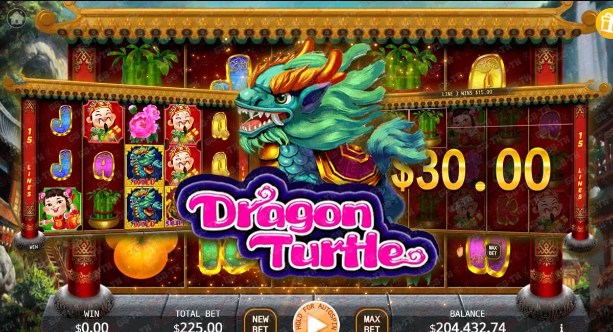 เกม Dragon Turtle เป็นเกมสล็อตแบบ 5 วงล้อ 3 แถว และมีจำนวนเงินเดิมพันต่อรอบเกมระหว่าง 0.25 ถึง 125 บาท ผู้เล่นสามารถเพิ่มหรือลดจำนวนเงินเดิมพันได้ตามต้องการ